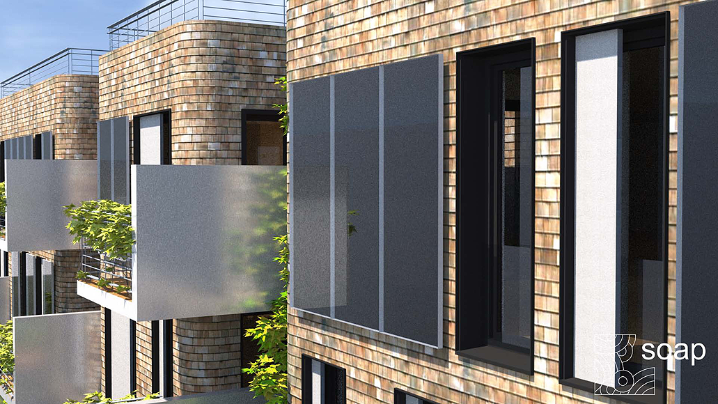Photovoltaik in Dach und Fassade und einer intelligenten Gebäudeautomatisie- rung. Durch maximale gleichzeitige lokale Deck- ung des Energiebedarfs im Gebäude wird die größtmögliche Wirtschaftlichkeit und Netzunabhängigkeit des Gebäudes erreicht.